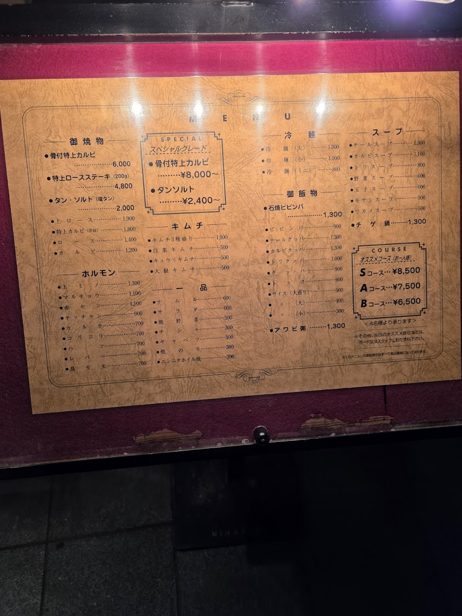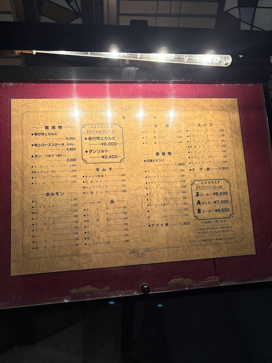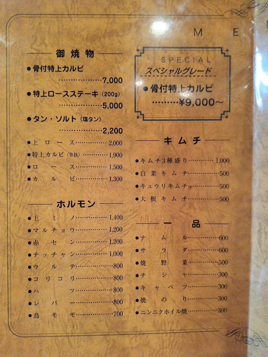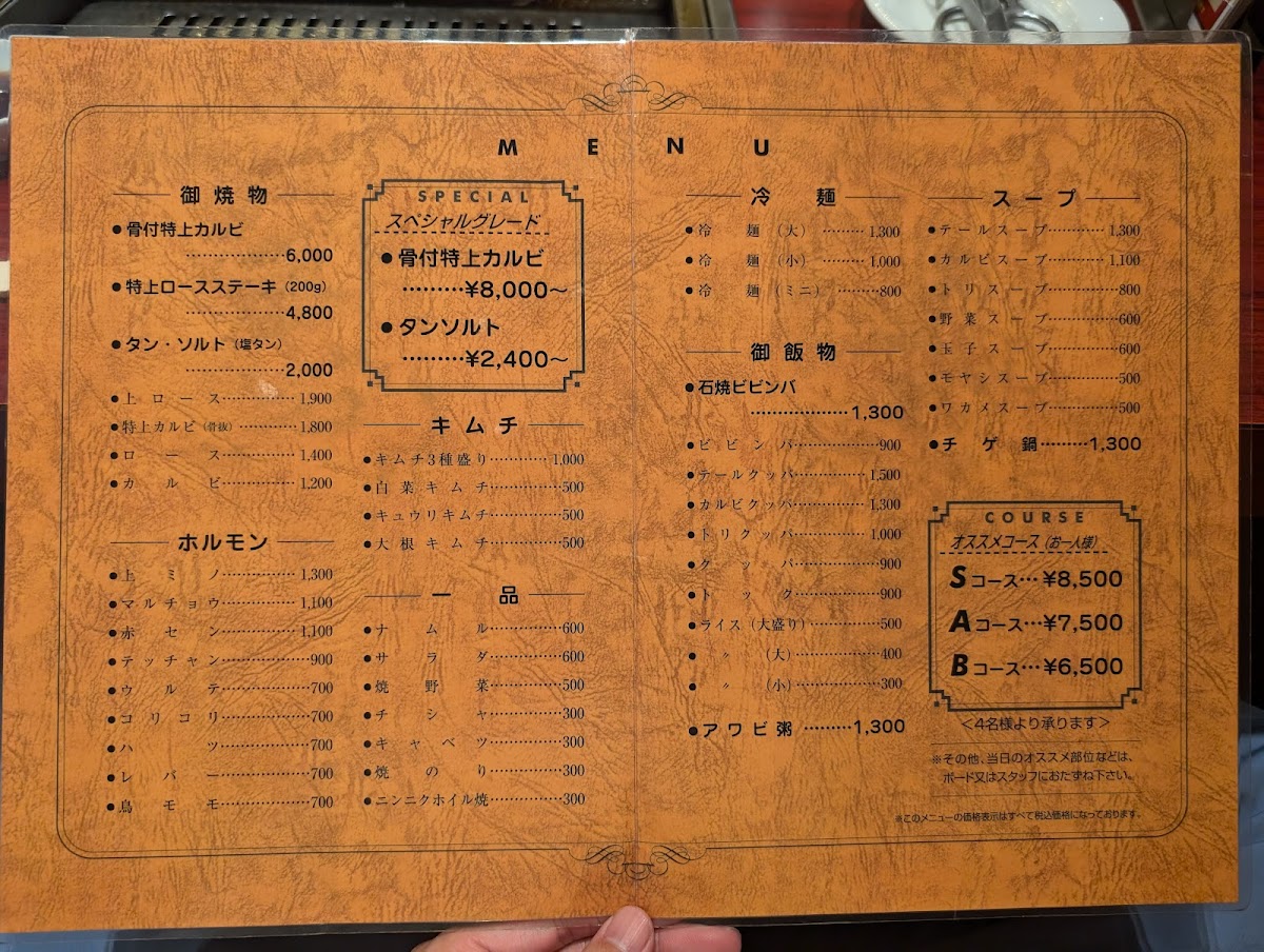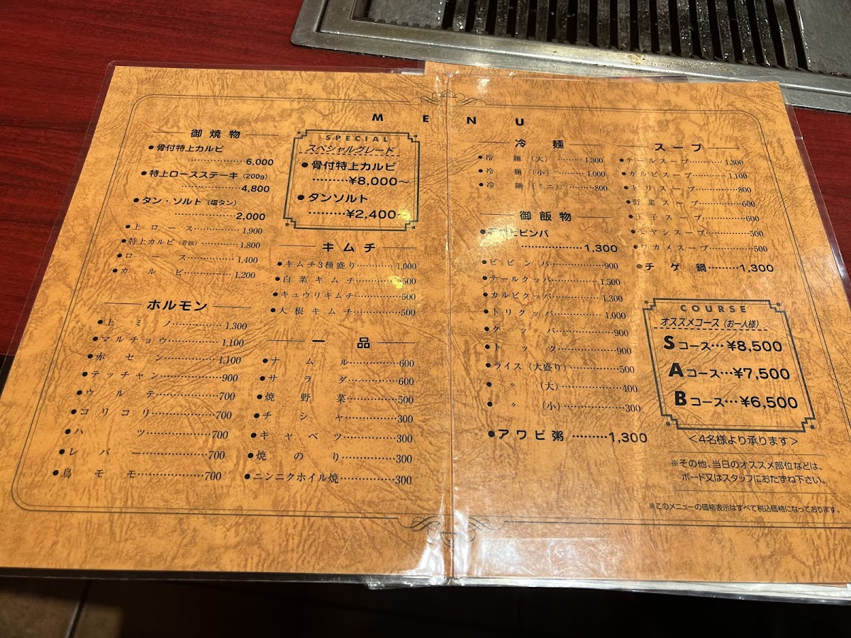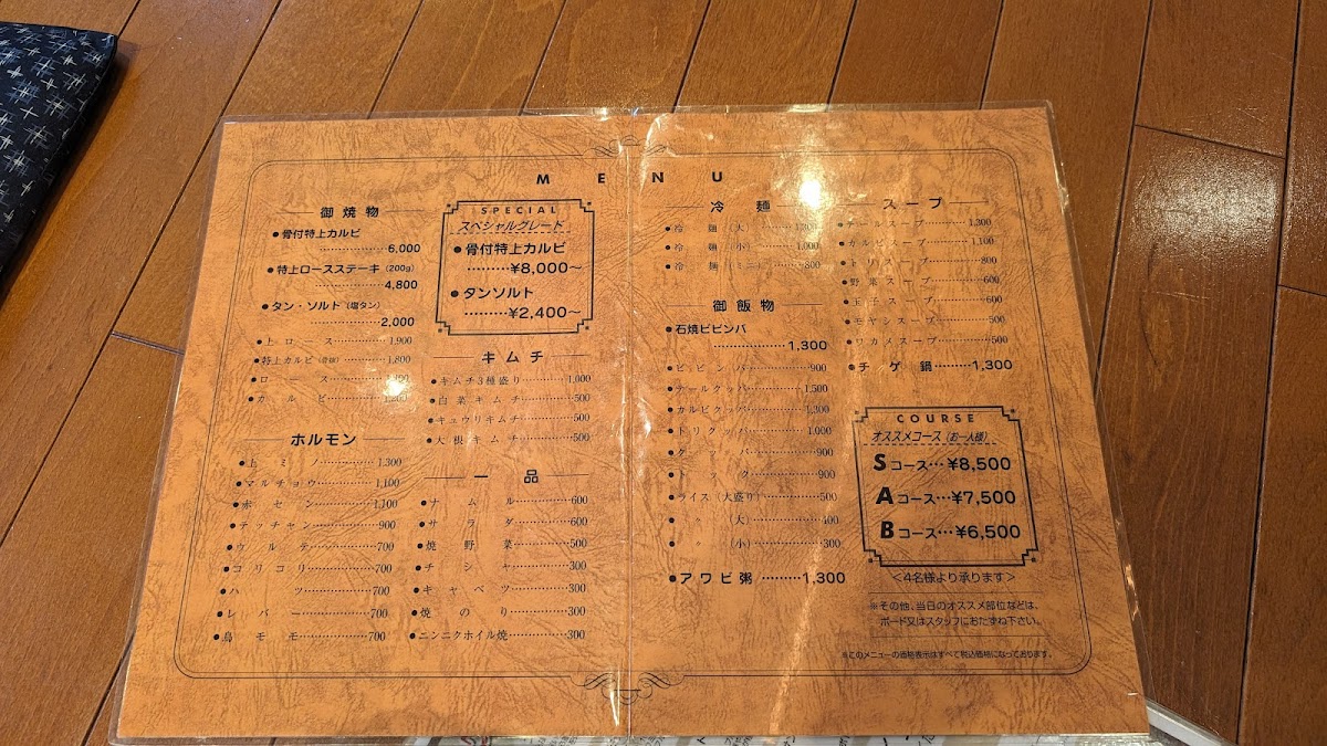 The menu at Korean BBQ and Cold Noodle Mirakuen offers a delightful blend of traditional Korean barbecue and refreshing cold noodle dishes. A standout option is the 骨付特上カルビ, a premium cut of bone-in short ribs that’s expertly grilled to perfection, delivering a rich, smoky flavor. For a lighter touch, the 冷麺ミニ provides a mini serving of cold noodles, perfectly complementing the grilled meats with its cool, tangy broth. The side dishes are equally impressive, with the キムチ3種盛り offering a vibrant trio of kimchi varieties, each with its own unique flavor profile, and the ナムル盛り合わせ, a well-balanced assortment of seasoned vegetables, enhancing the overall experience. The restaurant also serves refreshing drinks like 生ビール, a chilled draft beer that pairs wonderfully with the rich flavors of the barbecue, and マッコリ, a traditional Korean rice wine with a smooth, slightly sweet taste. For an extra burst of flavor, try the チシャとナムル, a plate of fresh lettuce leaves served with a side of seasoned vegetables, perfect for wrapping up pieces of grilled meat. Whether you’re craving a hearty BBQ feast or a lighter noodle meal, Mirakuen’s menu offers something for every taste, making it a memorable dining experience.